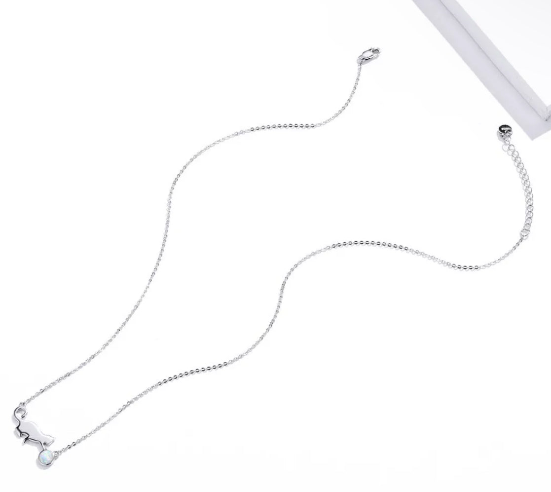 π± Playful Opal Cat Necklace β Sterling Silver 925